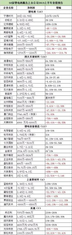 高工鋰電統(tǒng)計(jì)了50家鋰電板塊企業(yè)2019年半年度業(yè)績(jī)預(yù)告(含個(gè)別快報(bào))發(fā)現(xiàn),25家企業(yè)凈利出現(xiàn)下滑,23家企業(yè)實(shí)現(xiàn)凈利增長(zhǎng),堅(jiān)瑞沃能、珈偉新能、道氏技術(shù)、*ST鹽湖、寒銳鈷業(yè)、*ST猛獅甚至出現(xiàn)虧損,業(yè)績(jī)承壓。