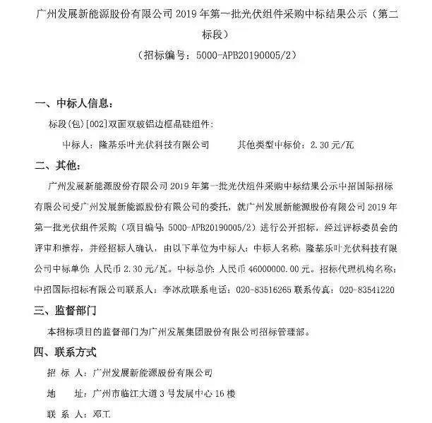 中國(guó)儲(chǔ)能網(wǎng)訊:日前,隆基中標(biāo)廣州發(fā)展新能源股份有限公司2019年首批光伏組件采購(gòu),總規(guī)模20MW,為隆基Hi-MO 4雙面420W高效組件。由此可見,綜合產(chǎn)品性價(jià)比及企業(yè)成本來看,高效組件在實(shí)際投資中更具優(yōu)勢(shì)。