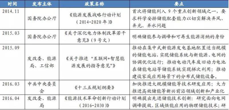 表 2:2016 年以來(lái)儲(chǔ)能扶持政策頻繁出臺(tái)