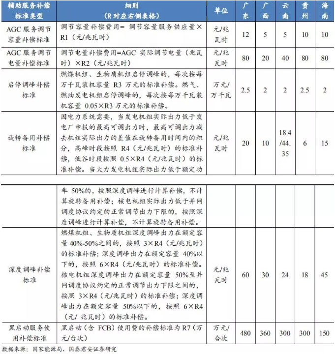 表 5:南方地區(qū)電力輔助服務(wù)補(bǔ)償機(jī)制