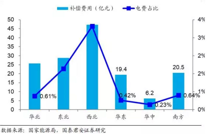 圖 2:2018 年電力輔助服務(wù)補(bǔ)償費(fèi)用地區(qū)分布