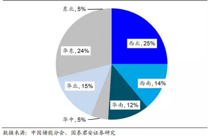 圖 13:西北和華東地區(qū)占全國(guó)儲(chǔ)能裝機(jī)規(guī)模的近 50%