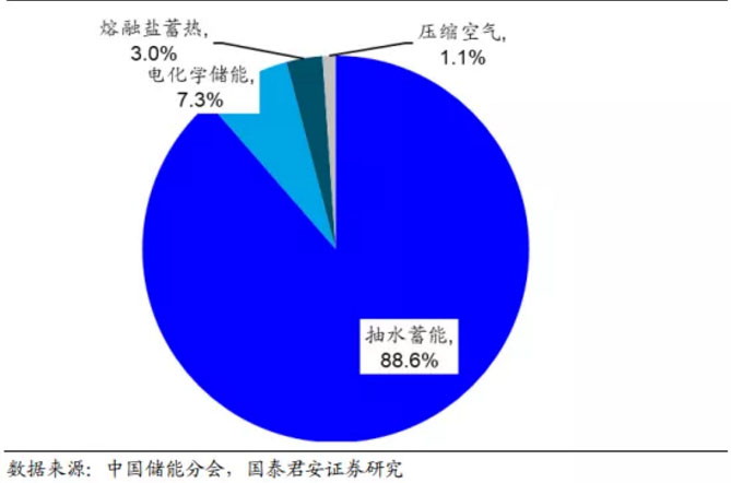 圖 11:截止 2018 年底抽水蓄能占中國(guó)儲(chǔ)能裝機(jī)的主導(dǎo)地位