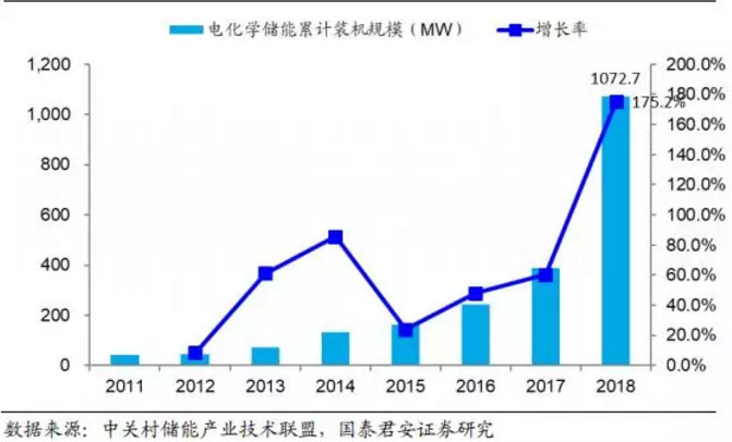 圖 14:2018 年全球電化學(xué)儲(chǔ)能裝機(jī)規(guī)模同比增長(zhǎng)超過(guò) 100%