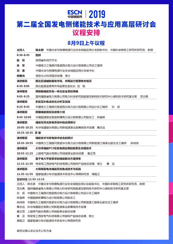 中國儲能網(wǎng)訊:為進(jìn)一步推進(jìn)儲能在發(fā)電側(cè)上的項(xiàng)目規(guī)劃、安全施工、系統(tǒng)集成技術(shù)應(yīng)用、運(yùn)營模式、電網(wǎng)接入、標(biāo)準(zhǔn)體系、風(fēng)光儲電站考核機(jī)制、調(diào)度模式、儲能項(xiàng)目備案、審批流程和市場環(huán)境等方面展開深入討論,中國化學(xué)與物理電源行業(yè)協(xié)會儲能應(yīng)用分會聯(lián)合全國微電網(wǎng)與分布式電源并網(wǎng)標(biāo)準(zhǔn)化技術(shù)委員會、中國電力工程顧問集團(tuán)西北電力設(shè)計(jì)院有限公司、西安北大科技園、中國科學(xué)院電工研究所儲能技術(shù)組、深圳市科陸電子科技股份有限公司等單位聯(lián)合主辦“第二屆全國發(fā)電側(cè)儲能技術(shù)與應(yīng)用高層研討會”,現(xiàn)將有關(guān)議程通知如下:
