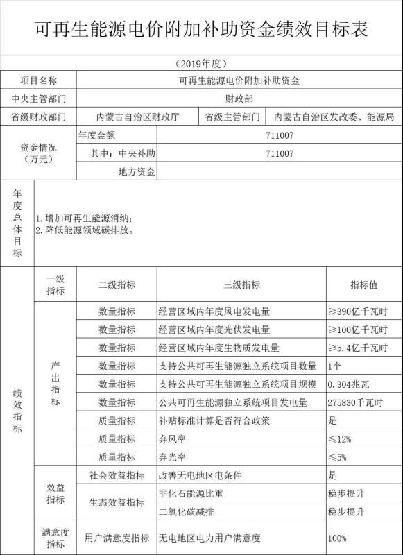 附件:財(cái)政部可再生能源電價(jià)附加補(bǔ)助資金績效目標(biāo)表