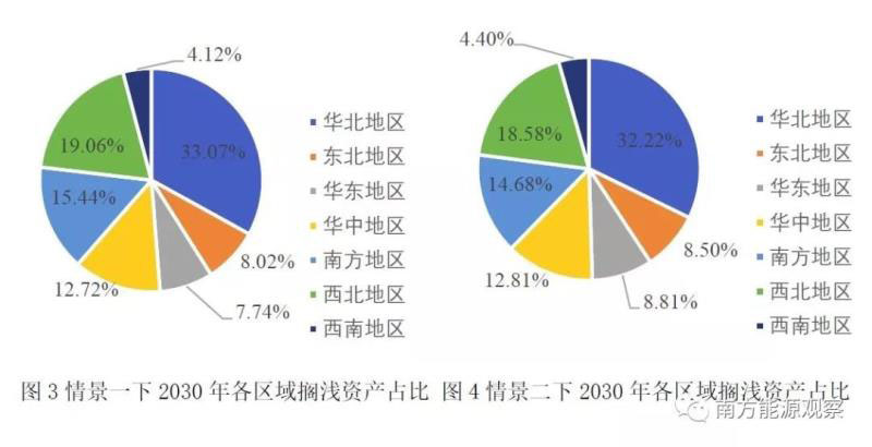 3、對各區(qū)域電網(wǎng)2020-2030年間的擱淺資產(chǎn)規(guī)模進(jìn)行量化分析。若以2030年為擱淺年份,未采取積極的供給側(cè)改革措施時(shí),華北、華東、華中、東北、南方、西北、西南地區(qū)將分別有341億元、80億元、131億元、83億元、159億元、197億元、43億元資產(chǎn)被擱淺。而采取積極的供給側(cè)改革措施后,各區(qū)域的擱淺資產(chǎn)將平均降低60%。因此,從各電網(wǎng)區(qū)域的角度來看,應(yīng)優(yōu)化區(qū)域電網(wǎng)調(diào)度,合理利用煤電資源。