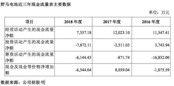 查閱野馬電池招股書,《投資時報》研究員進(jìn)一步注意到,報告期內(nèi)該公司凈利潤波動較大,其中2017年凈利潤下降超六成,且2018年凈現(xiàn)金流壓力加大。同時,由于出口業(yè)務(wù)占主營收入比例較大,未來業(yè)績走勢有待觀察。