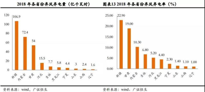 2018年棄風棄電率排名前三的省份分別為新疆、內(nèi)蒙古和甘肅,全國平均棄風棄電率為7%,這三個省份均超過了10%。由于可再生資源豐富,西北省份也是電價最低的地區(qū)。