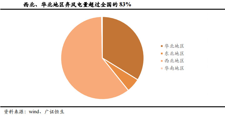 2018年我國全國棄風棄電量277億千瓦時,其中西北地區(qū)為166.9億千瓦時,占全國的60.25%,其次是華北地區(qū)(占全國33.68%),東北地區(qū)占少量份額(全國5.45%)。