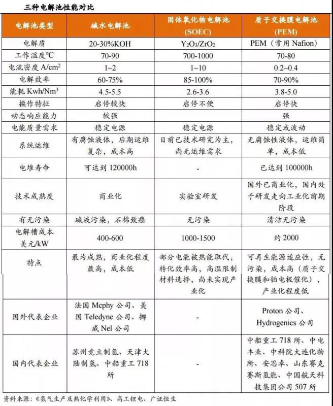 目前主流的電解水制氫技術有三種類型:包括堿性電解水制氫、質(zhì)子交換膜電解水(PEM)制氫和固態(tài)氧化物電解水(SOEC)制氫.