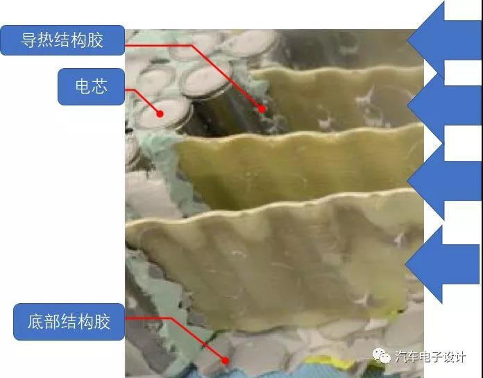我們把原始的Pack的狀態(tài),和現(xiàn)場照片比對,這里不僅把模組結(jié)構(gòu)破壞了,而且把底板切開,導(dǎo)電底板扭曲了直接往模組里面卷