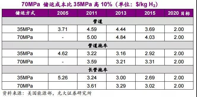 2020年美國能源局提出70MPa儲運(yùn)成本下降到2$/kgH2的目標(biāo)。