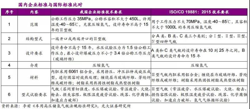 國內(nèi)在35MPaIII型瓶有成熟產(chǎn)品,但是35MPa氣瓶的續(xù)航里程上對比純電動車沒有優(yōu)勢,必須采用70MPaIII型在燃料電池乘用車上才有續(xù)航里程的優(yōu)勢,但是70MPaIII型瓶國內(nèi)僅有個(gè)別廠家具有成熟產(chǎn)品。