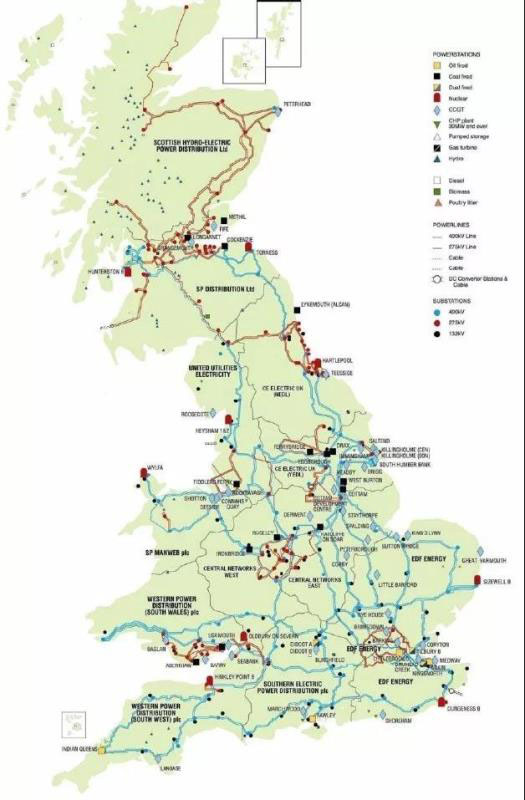 圖 2 英國電網(wǎng)的主網(wǎng)架