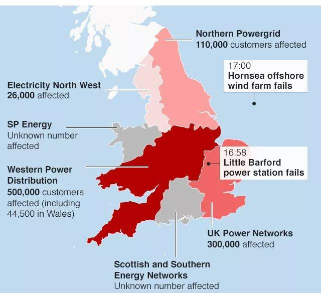 這是自2003年“倫敦大停電”以來,英國發(fā)生的規(guī)模最大、影響人口最多的停電事故。