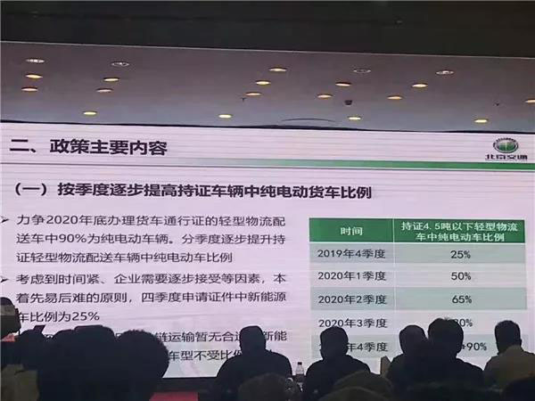 據(jù)悉,該初審實(shí)施細(xì)則指出的工作目標(biāo)為:自2019年四季度起,北京市將通過(guò)分季度提升純電動(dòng)貨車持證比例和實(shí)施差別化通行措施,實(shí)現(xiàn)“到2020年底,除冷鏈運(yùn)輸車輛外,通過(guò)辦理貨車通行證方式允許日間通行五環(huán)以內(nèi)道路的4.5噸以下輕型物流車中,純電動(dòng)貨車比例達(dá)到相關(guān)要求”。
