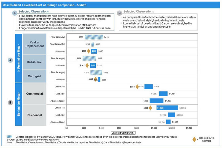 Lazard公司調查的各種電池儲能系統(tǒng)安裝成本