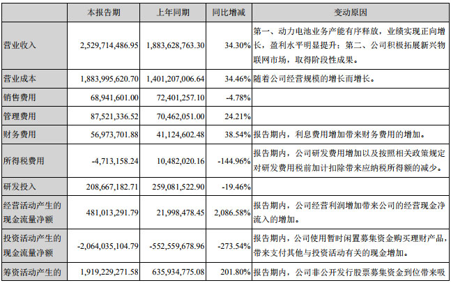 鋰離子電池業(yè)務(wù)的營(yíng)業(yè)收入由小型鋰離子電池和動(dòng)力電池構(gòu)成。報(bào)告期內(nèi),隨著產(chǎn)能穩(wěn)定、有效的釋放,共實(shí)現(xiàn)營(yíng)業(yè)收入18.74億元,與上年同期相比增長(zhǎng)47.64%,實(shí)現(xiàn)了較大幅度的增長(zhǎng)。