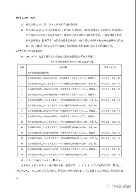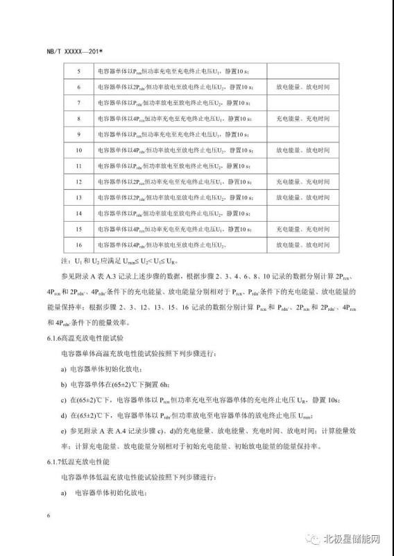 《電力儲(chǔ)能用超級(jí)電容器試驗(yàn)規(guī)程》能源行業(yè)標(biāo)準(zhǔn)征求意見(jiàn)稿