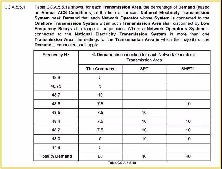 ? 表1:英國電網Low-frequency-Demand-Disconnection低頻減載措施
