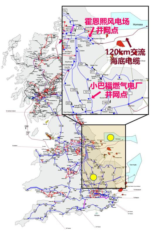 ? 圖3:英國電網發(fā)生故障的小巴福燃氣電站與霍恩熙風電場的電氣位置