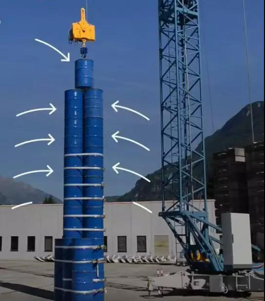 這項技術(shù)對塔吊的精度要求非常高。幾十米長、迎風(fēng)飄擺的纜繩,需要做到讓 5000 塊磚,每一塊的位置誤差都小于幾毫米。否則,百米高塔就真的會像小孩子搭的積木一樣,說塌就塌。在知名媒體 Quartz 發(fā)布的一段 Energy Vault 原型機的視頻中,鋼纜的抖動幅度明顯很大,遠不止幾毫米。而且,只有 20 米高的塔,為了提高穩(wěn)定性,Energy Vault 把塔的主體用一道道鋼箍緊緊綁牢??赡芩麄冏约阂矒?dān)心,如果上面的沒放穩(wěn),下面的就會塌。