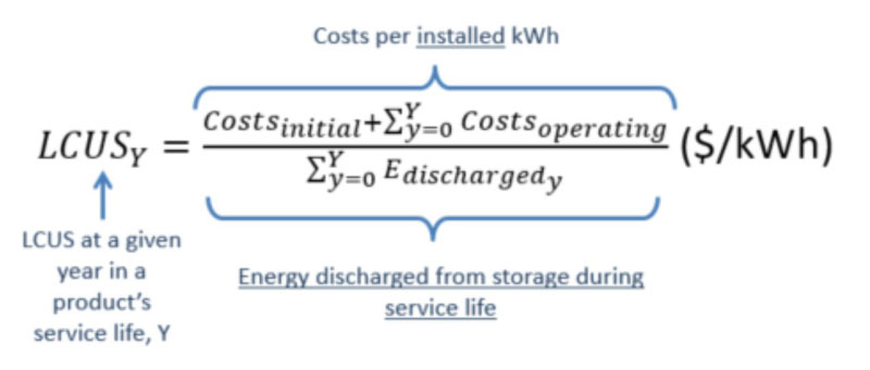 因此,簡(jiǎn)單地說,儲(chǔ)能系統(tǒng)平準(zhǔn)化使用成本(LCUS)是儲(chǔ)能系統(tǒng)的每次使用成本。
