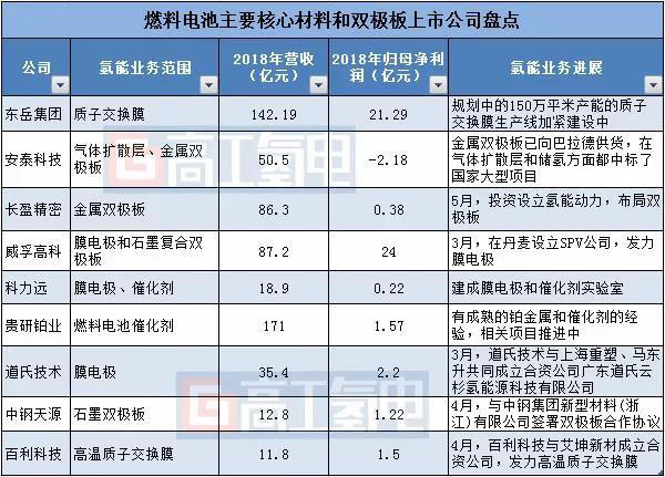 這些布局氫燃料電池上游核心材料和雙極板的企業(yè),目前具體進(jìn)展如何,又有哪些合作項(xiàng)目?高工氫電特意對(duì)相關(guān)上市公司的氫能布局進(jìn)行了盤點(diǎn),以供讀者參考。