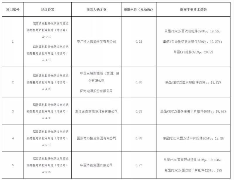 根據(jù)達拉特光伏發(fā)電領跑獎勵激勵基地2019年競爭優(yōu)選工作方案,達拉特旗人民政府組織達拉特光伏發(fā)電領跑獎勵激勵基地競爭優(yōu)選,現(xiàn)將基地內(nèi)各項目排名第一的推薦投資企業(yè)評優(yōu)結果公示如下: