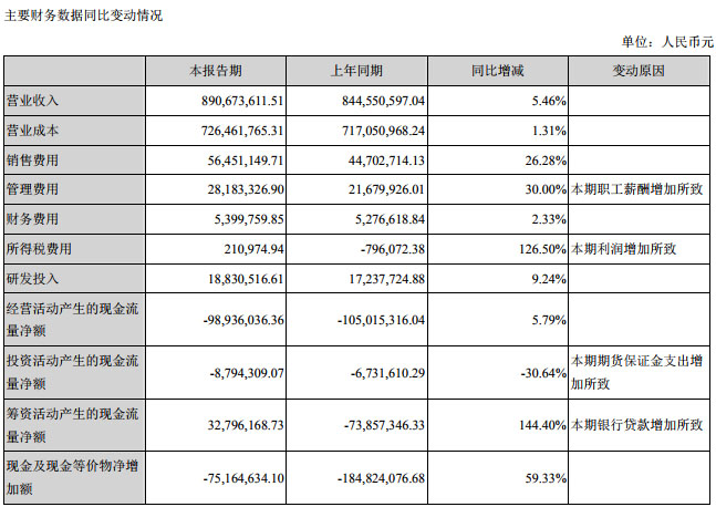 其中營業(yè)收入構(gòu)成顯示,新能源及應急儲能電池營業(yè)收入5.07億元,占營業(yè)收入比重56.94%,較上年同期增長51.21%,毛利率19.39%,較上年同期增長8.14%。備用電池營業(yè)收入占比27.69%,動力電池占比10.62%。