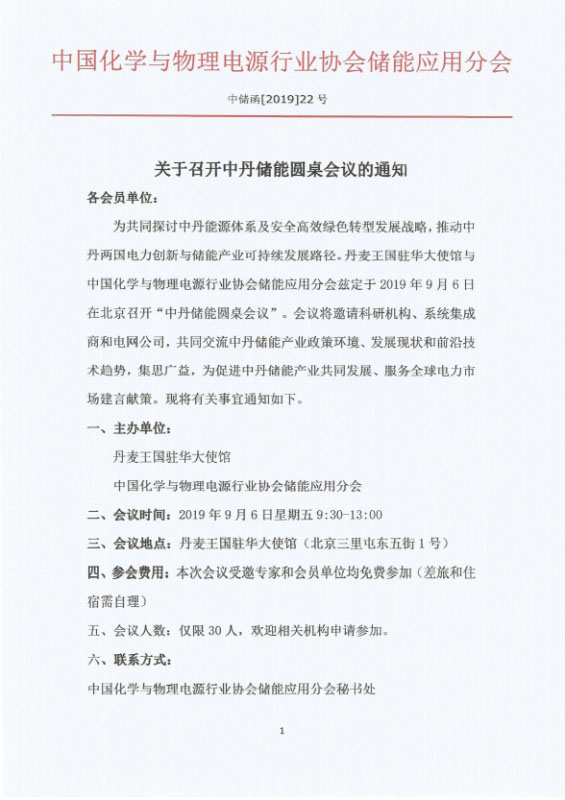 為共同探討中丹能源體系及安全高效綠色轉(zhuǎn)型發(fā)展戰(zhàn)略,推動中丹兩國電力創(chuàng)新與儲能產(chǎn)業(yè)可持續(xù)發(fā)展路徑。丹麥王國駐華大使館與中國化學(xué)與物理電源行業(yè)協(xié)會儲能應(yīng)用分會茲定于2019年9月6日在北京召開“中丹儲能圓桌會議”。會議將邀請科研機構(gòu)、系統(tǒng)集成商和電網(wǎng)公司,共同交流中丹儲能產(chǎn)業(yè)政策環(huán)境、發(fā)展現(xiàn)狀和前沿技術(shù)趨勢,集思廣益,為促進中丹儲能產(chǎn)業(yè)共同發(fā)展、服務(wù)全球電力市場建言獻策。