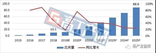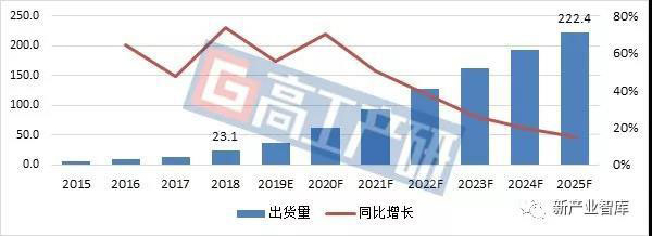 2015-2025年全球軟包動力電池出貨量分析及預(yù)測(GWh)