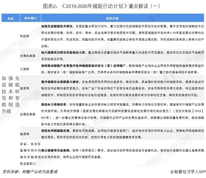 為落實《關(guān)于促進儲能技術(shù)與產(chǎn)業(yè)發(fā)展的指導(dǎo)意見》(發(fā)改能源【2017】1701號,以下簡稱《指導(dǎo)意見》),進一步推進我國儲能技術(shù)與產(chǎn)業(yè)健康發(fā)展,支撐清潔低碳、安全高效能源體系建設(shè)和能源高質(zhì)量發(fā)展,國家能源局、國家發(fā)改委、科技部、工信部聯(lián)合發(fā)布貫徹落實《關(guān)于促進儲能技術(shù)與產(chǎn)業(yè)發(fā)展的指導(dǎo)意見》2019-2020年行動計劃,該計劃為下一階段推動儲能產(chǎn)業(yè)工作做了明確職能分工。
