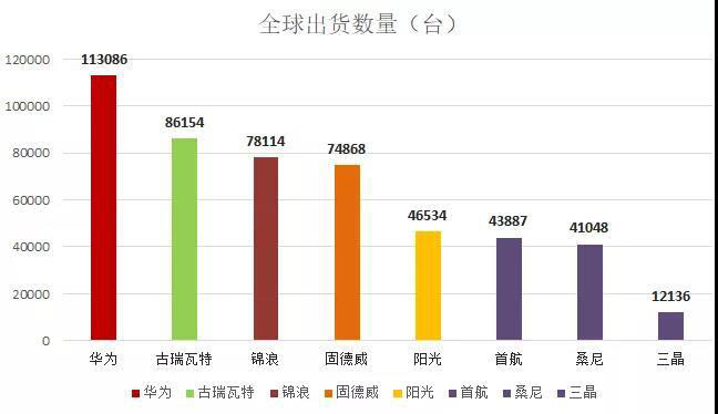 下圖可見,華為、古瑞瓦特、錦浪、固德威位列出貨量第一梯隊,逆變器出貨數量均超過了7萬臺。