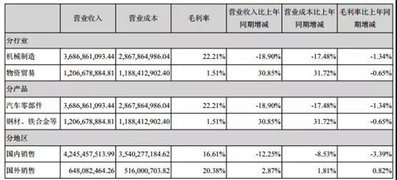 其中,占總營業(yè)收入超7成的汽車零部件業(yè)務(wù)板塊在今年上半年共營收36.87億元,同比下滑18.9%,毛利潤跌至22.21%,同比微降1.34%。