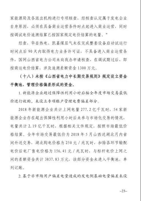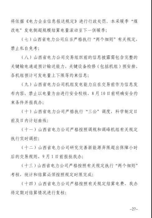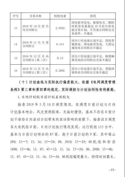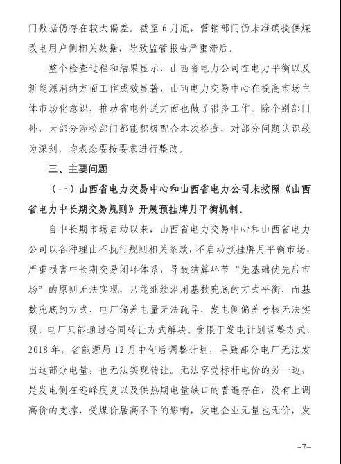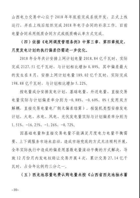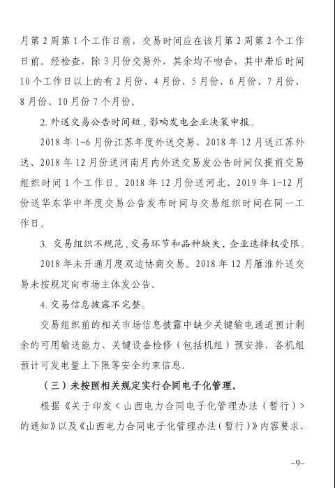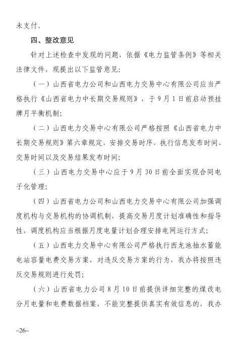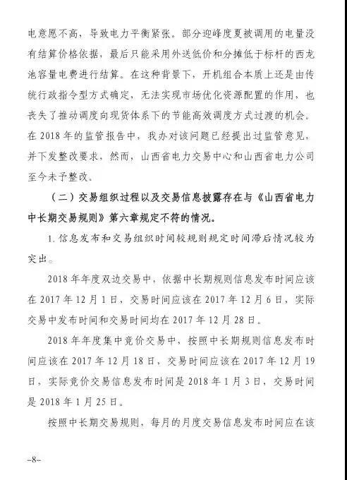 針對發(fā)現(xiàn)的問題,報告提出監(jiān)管意見:山西省電力公司和山西電力交易中心有限公司于9月1日前啟動預(yù)掛牌月平衡機制;9月30日前,山西電力交易中心將全面實現(xiàn)合同電子化管理等。