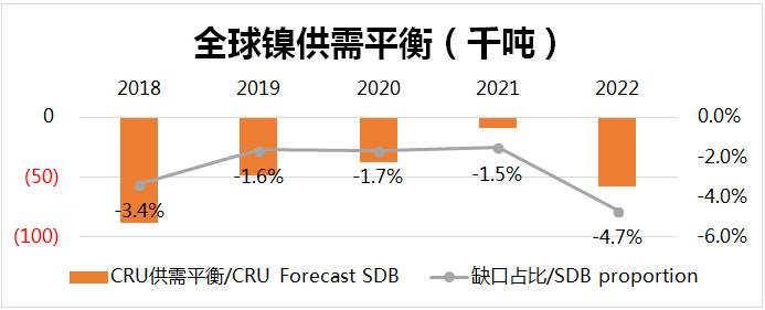 在新能源汽車增長(zhǎng)的拉動(dòng)下,三元?jiǎng)恿﹄姵赜昧垦该驮鲩L(zhǎng),從而帶動(dòng)了鎳資源的需求大爆發(fā),英國商品研究機(jī)構(gòu)(CRU)推算2017-2019年累計(jì)缺口為12.5萬金屬噸,到2025年新能源汽車將新增48萬噸以上鎳金屬的需求,供需缺口將進(jìn)一步拉大,由此引發(fā)全球鎳資源告急。