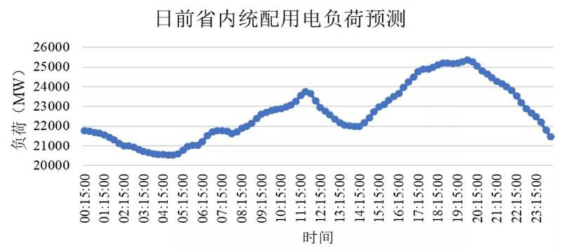 下圖為山西省今年8月23日日前省內(nèi)統(tǒng)配用電負(fù)荷預(yù)測。根據(jù)預(yù)測,最大負(fù)荷出現(xiàn)在晚高峰,正午12點(diǎn)左右也出現(xiàn)了負(fù)荷顯著降低。