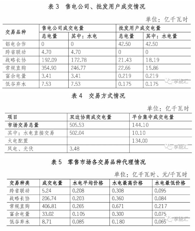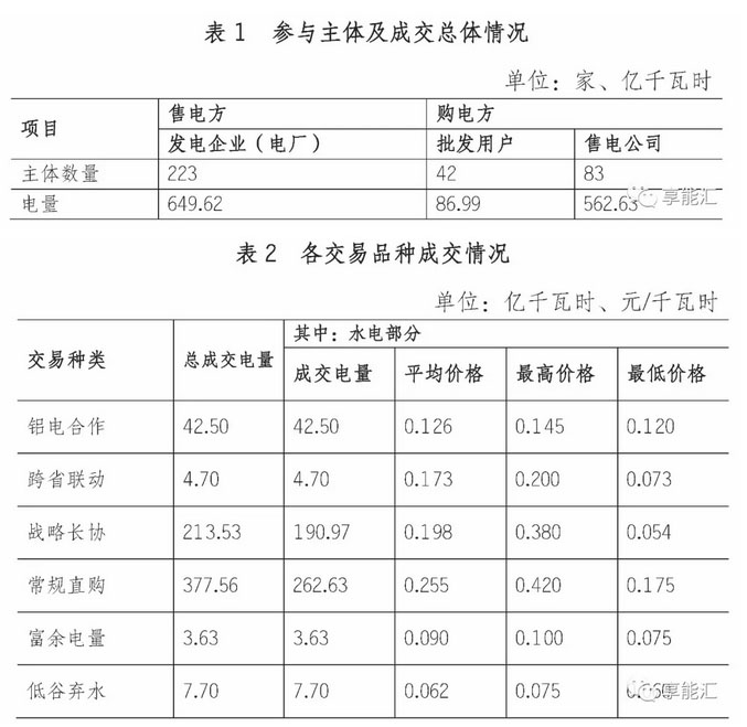 年度交易中,83家售電公司,代理了3146家電力用戶,年度簽約總量 660.53 億千瓦時(shí),水電簽約均價(jià) 0.229 元/千瓦時(shí)。