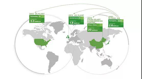 遠景AESC目前在日本、美國、英國擁有三大電池工廠,總產(chǎn)能達7.5GWh。2018年10月,遠景AESC宣布將在無錫江陰臨港開發(fā)區(qū)新能源產(chǎn)業(yè)園建設(shè)新廠,規(guī)劃產(chǎn)能20GWh。