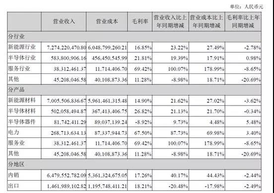 2019年上半年,新能源材料錄得營收70.06億元,占營收比重88.21%,同比增加21.62%,帶動(dòng)中環(huán)股份整體營收同比大漲22.91%;電力錄得營收2.69億元,同比大幅增長87.73%。