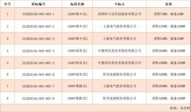 2019年8月30日,國家電力投資集團有限公司公示了2019年度第五十九批集中招標(第一批光伏逆變器設備)的招標結果。華為(760MW)、上能電氣(695MW)、陽光電源(640MW)、科士達(130MW)中標,成為此次逆變器集采的贏家。