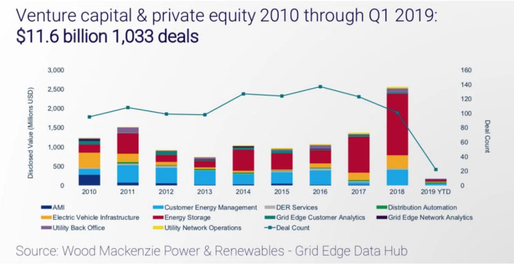 2018年全球儲能市場投資比往年顯著增加,但2019年第一季度的投資有所減緩。然而,2010-2019年期間獲得116億美元投資并不令人意外。還需要注意的是,儲能系統(tǒng)在投資中發(fā)揮了越來越重要的作用。