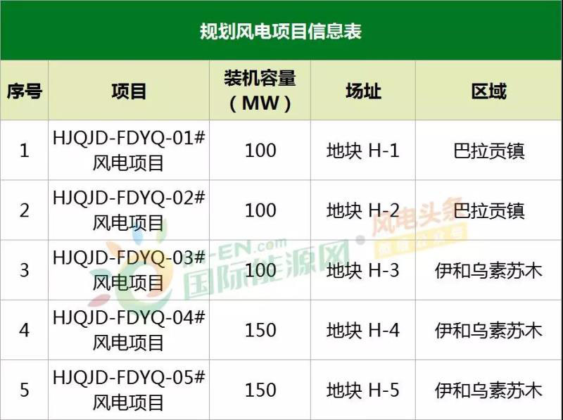 其中 HJQJD-FDYQ-01#風電項目、HJQJD-FDYQ-02#風電項目、HJQJD-FDYQ-03#風電項目裝機容量均為100MW,HJQJD-FDYQ-04#風電項目、HJQJD-FDYQ-05#風電項目裝機容量均為150MW。