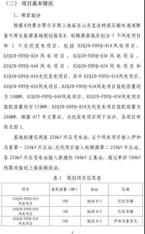 根據(jù)《內(nèi)蒙古鄂爾多斯上海廟至山東直流特高壓輸電通道配套可再生能源基地規(guī)劃報告》,杭錦旗基地共劃分5個風電項目,包括 HJQJD-FDYQ-01#風電項目、HJQJD-FDYQ-02#風電項目、HJQJD-FDYQ-03#風電項目、HJQJD-FDYQ-04#風電項目、HJQJD-FDYQ-05#風電項目。