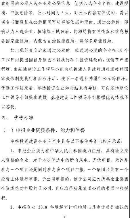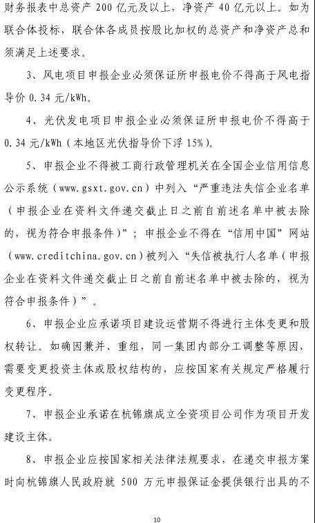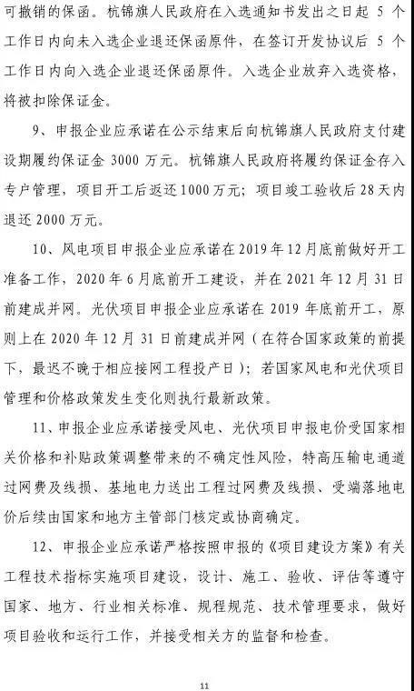 8、申報企業(yè)應承諾在公示結束后向杭錦旗人民政府支付建設期履約保證金3000萬元。