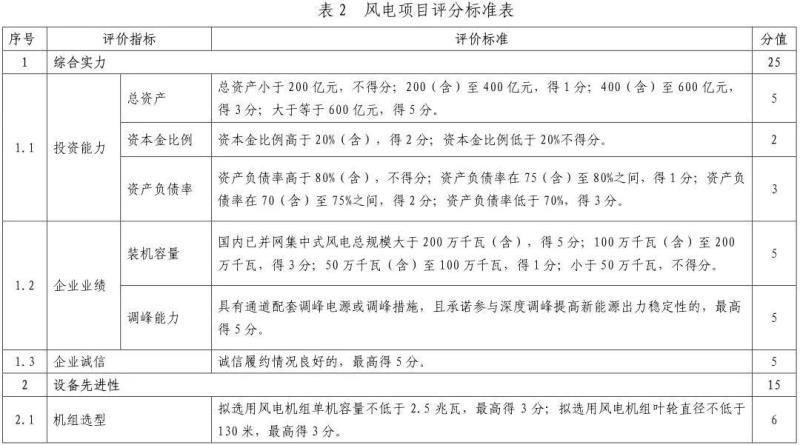 風電項目評分標準: