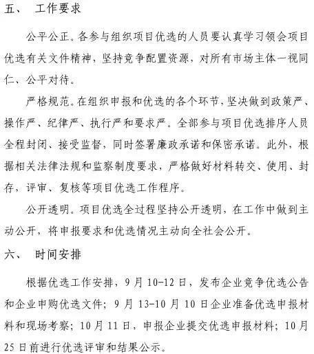 另外,本次競爭優(yōu)選工作采用競爭優(yōu)選方式配置項目資源,優(yōu)選投資主體,確保項目按時建成投產(chǎn)。