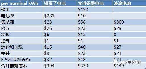 可見雖然液流電池前期一次投入成本較高,但綜合前期建設(shè)、以及全生命周期的運(yùn)營成本以后,鋰離子電池的單次充電度電成本與液流電池相當(dāng),鉛酸電池由于后續(xù)更換電池等因素、單次充電度電成本偏高。